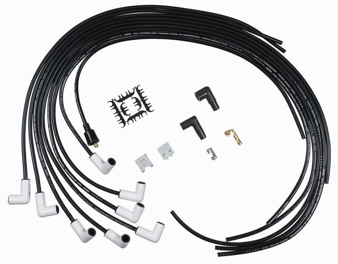 Spark Plug Wire Set - Extreme 9000 Ceramic - Spiral Core - 8 mm - Black - 90 Degree Plug Boots - HEI / Socket Style - Cut-To-Fit - V8 - Kit