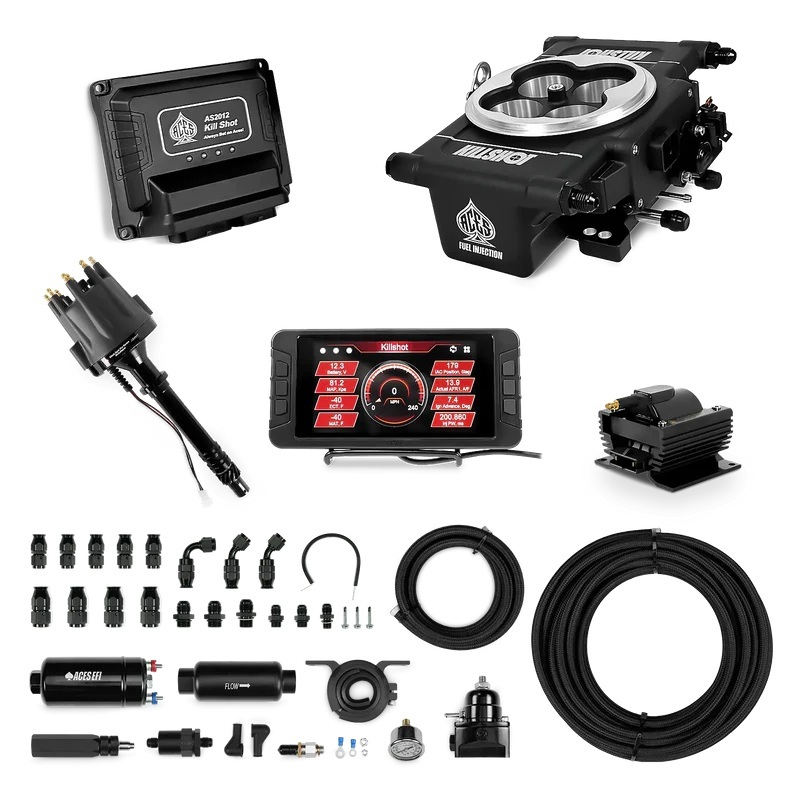 Fuel Injection - Killshot EFI Master - Throttle Body - Square Bore - Computer / Distributor / Fittings / Fuel Pump / Fuel Pressure Regulator / Ignition Coil / Wiring Harness - Aluminum - Black Ceramic Coating - Universal - Kit