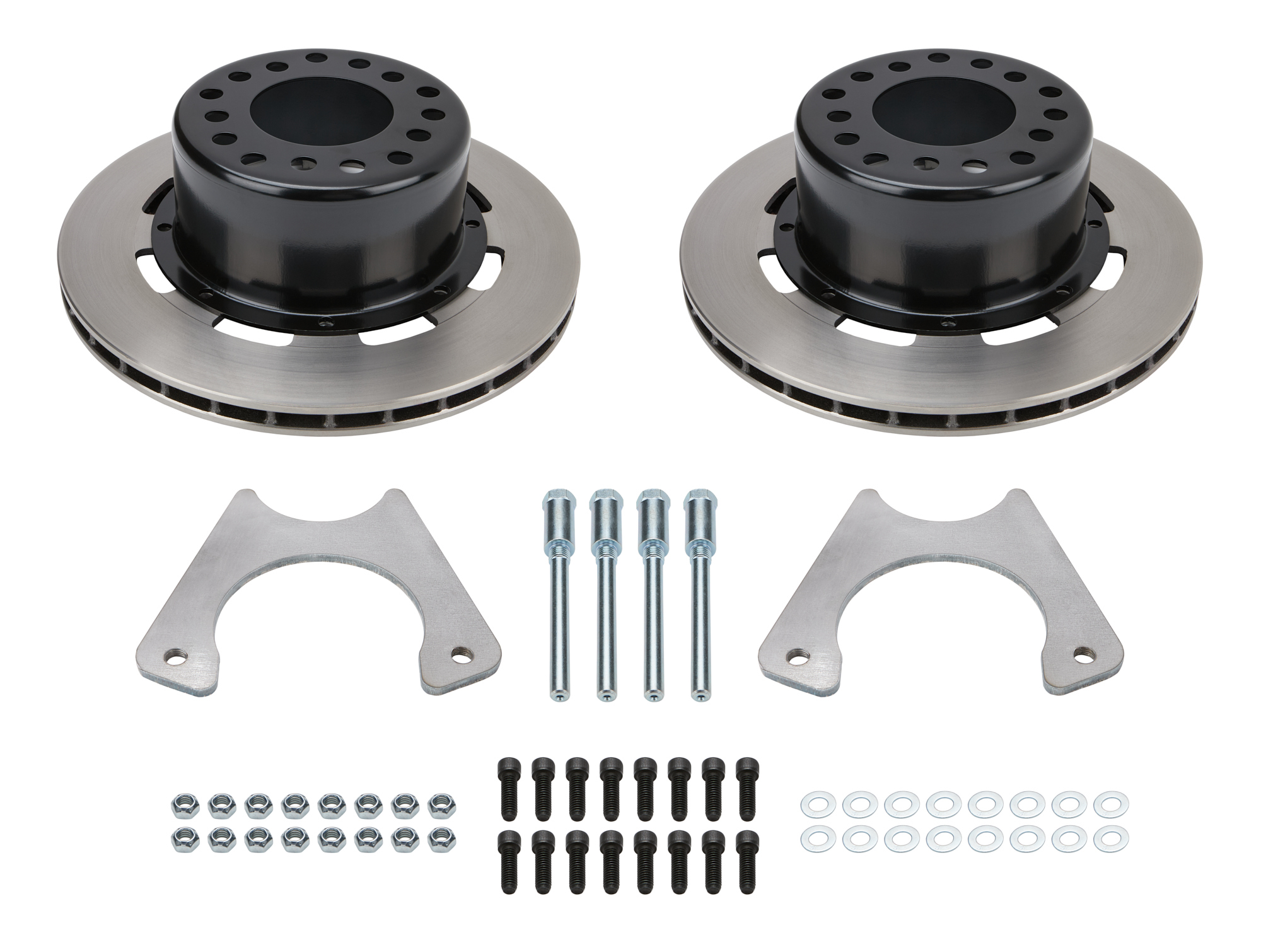 Kit includes Brake rotors (.810 x 11.75), universal rotor hats, rotor bolt kits, caliper mounting bolts and caliper mounting brackets for GM intermediate metric style calipers (ALL42083 and ALL42084). Update wil160-0471 are replacement rotors for this kit.