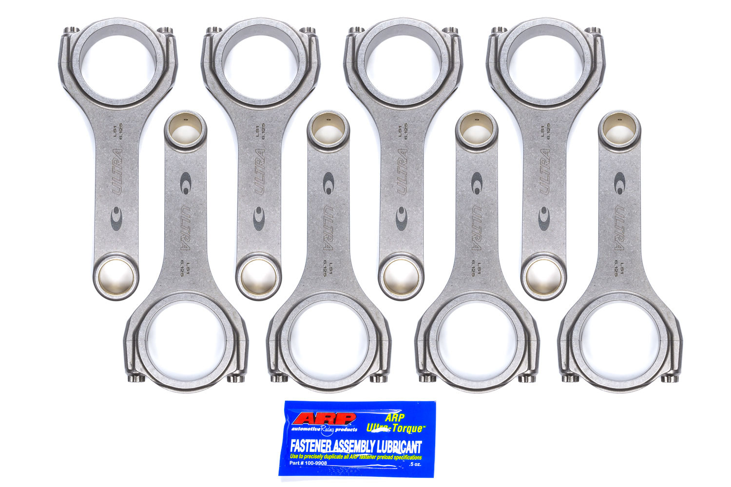 Connecting Rod - Ultra H-Beam - H Beam - 6.125 in Long - Bushed - 7/16 in Cap Screws - ARPL19 Bolt - Forged - Steel - GM LS-Series - Set of 8