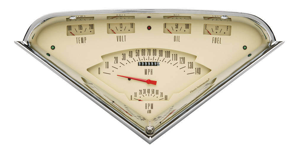 Gauge Kit - Tach Force - Analog - Water Temperature / Voltmeter / Oil Pressure / Fuel Pressure / Tachometer / Speedometer - Tan / Chrome Panel - GM Fullsize Truck 1955-59 - Kit