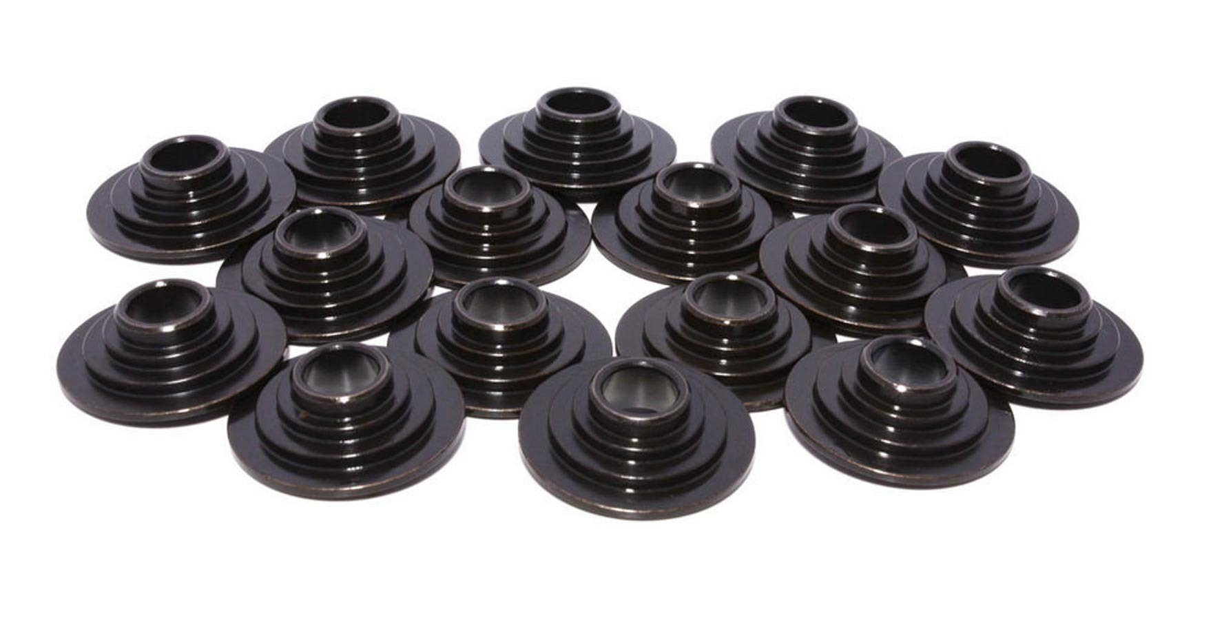 Valve Spring Retainer - Super Lock - 10 Degree - 1.120 in / 0.830 in / 0.640 in OD Steps - 1.500-1.550 in Triple Spring - Chromoly - Black Oxide - Set of 16