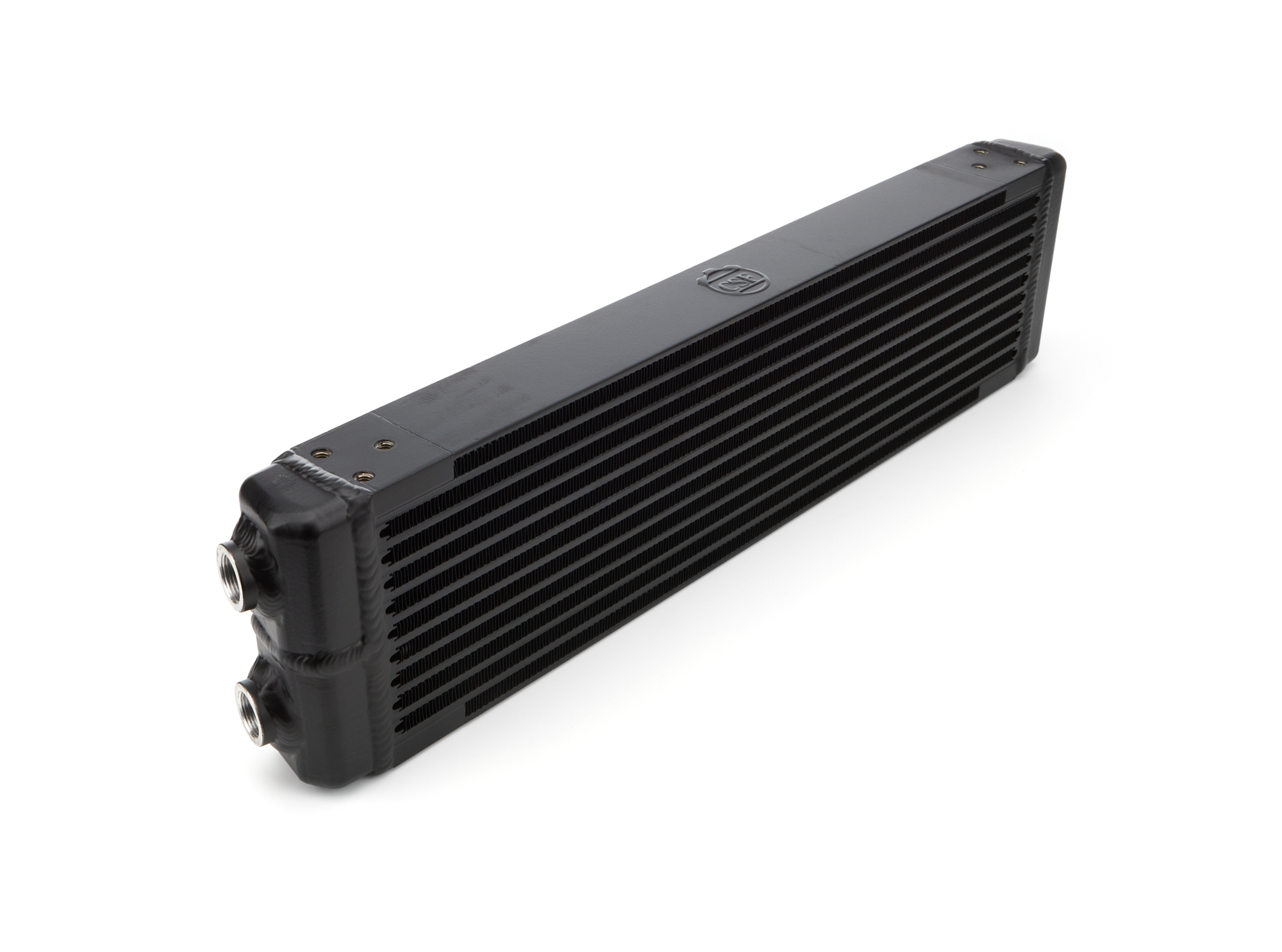 Fluid Cooler - 24 x 5.75 x 2.25 in - Plate and Fin Type - 22 mm x 1.50 Female Inlet / Outlet - Aluminum - Black Powder Coat - Universal - Each