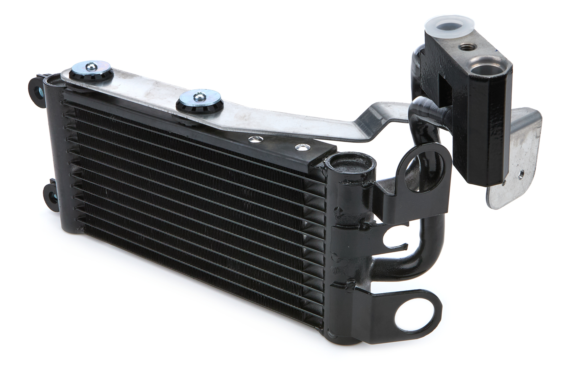 Fluid Cooler – 11.375 x 9 x 1 in – Plate and Fin Type – OEM Inlet / Outlet – Aluminum – Black Powder Coat – BMW M3 2008-13 – Each