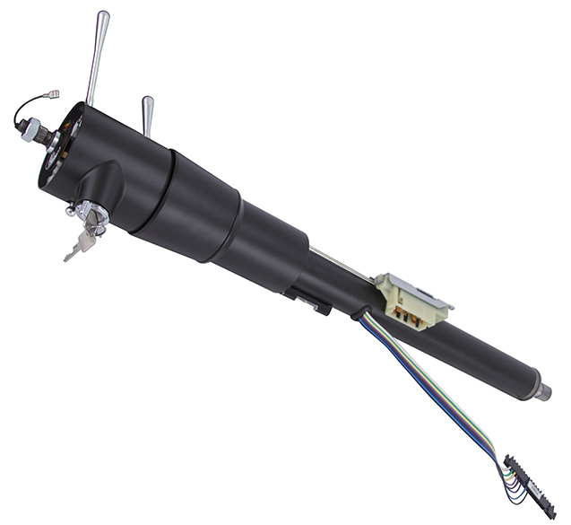 Steering Column - Tilt - 2 in Tube - 30 in Length - Hazard / Key / Turn Signal - Stainless - Black Powder Coat - Jeep Wrangler CJ 1979-86 - Each
