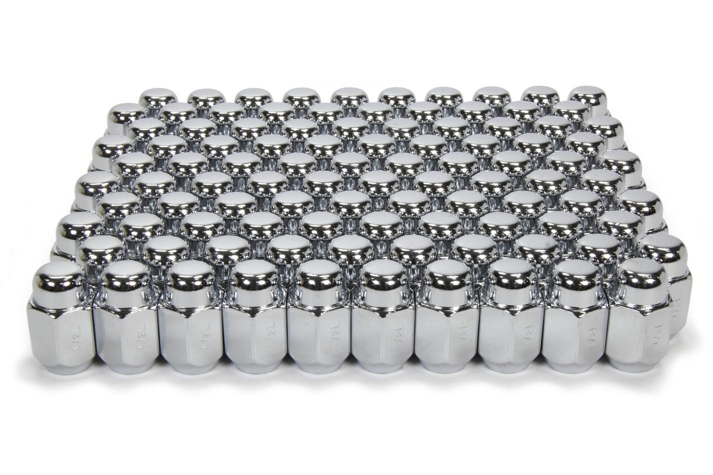 Lug Nut - Acorn - 1/2-20 in Right Hand Thread - 13/16 in Hex Head - 60 Degree Seat - Closed End - Steel - Chrome - Set of 100