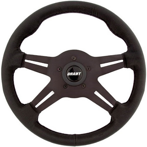Steering Wheel – Gripper Series – 13 in Diameter – 1 in Dish – 4-Spoke – Black Diamond Textured Vinyl Grip – Aluminum – Black Anodized – Each
