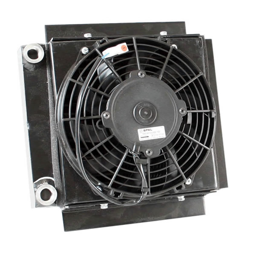 Fluid Cooler and Fan - 12.06 x 12.47 x 6.39 in - Plate Type - 1/2 in NPT Female Inlet / Outlet - Aluminum - Black Powder Coat - Universal - Each