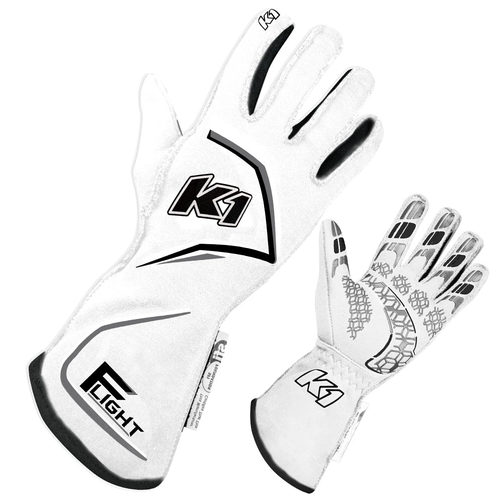 K1 RACEGEAR Gloves Flight Large White 23-FLT-WG-L