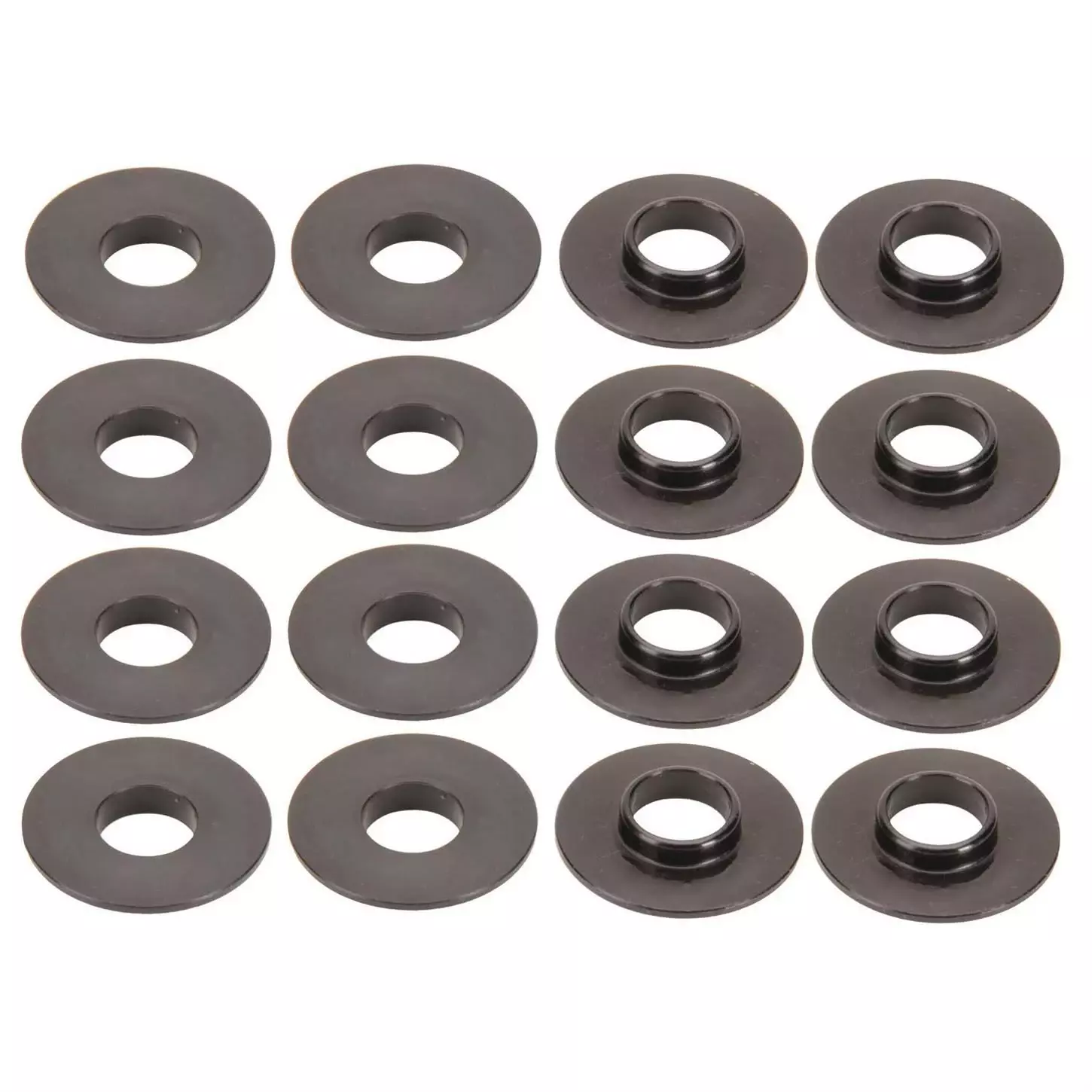Valve Spring Locator – Inside – 0.062 in Thick – 1.410 in OD – 0.567 in ID – 0.690 in Spring ID – Steel – Black Oxide – Set of 16