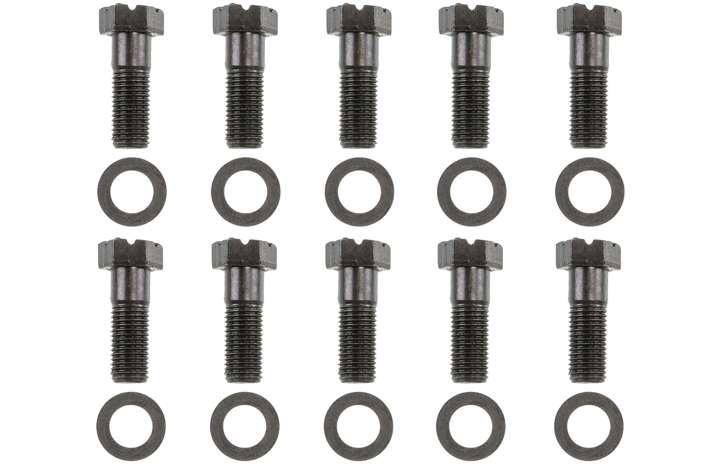 Ring Gear Bolt Kit – 7/16-20 in Thread – 1.25 in Long – Hex Head – DT911 Washers Included – Steel – Black Oxide – Ford 9 in – Set of 10