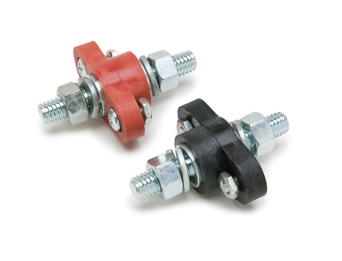 Battery Cable Connector - Bulkhead - 12V - 1 in Diameter Hole - 3/8-16 in Thread - Hardware Included - Black / Red - Kit