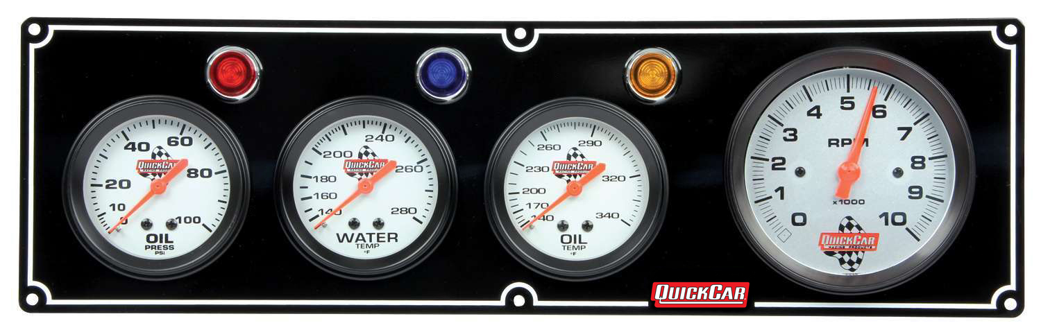 AR HomeShopGauges and AccessoriesGauge KitsAnalog Gauge KitsQUICKCAR RACING PRODUCTS 3-1 Gauge Panel OP/WT/OT w/3-3/8in Tach Black 61-67413