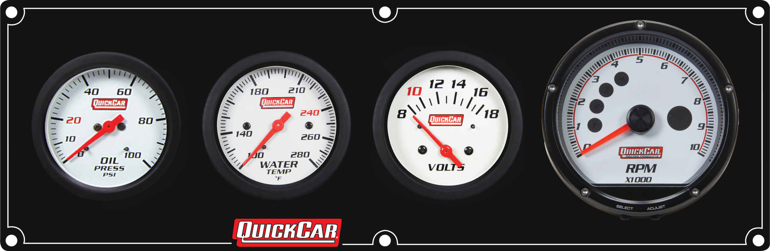 Gauge Panel Assembly - Extreme - Plain Panel - Oil Pressure / Water Temperature / Voltmeter / Tachometer - 2-5/8 in Diameter - White Face - Warning Light - Kit