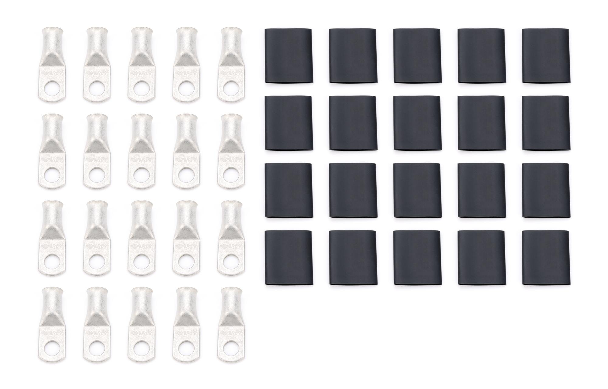 Battery Terminal - 2 Gauge - 5/16 in Eyelet - Heat Shrink Included - Copper - Tin Plated - Set of 20