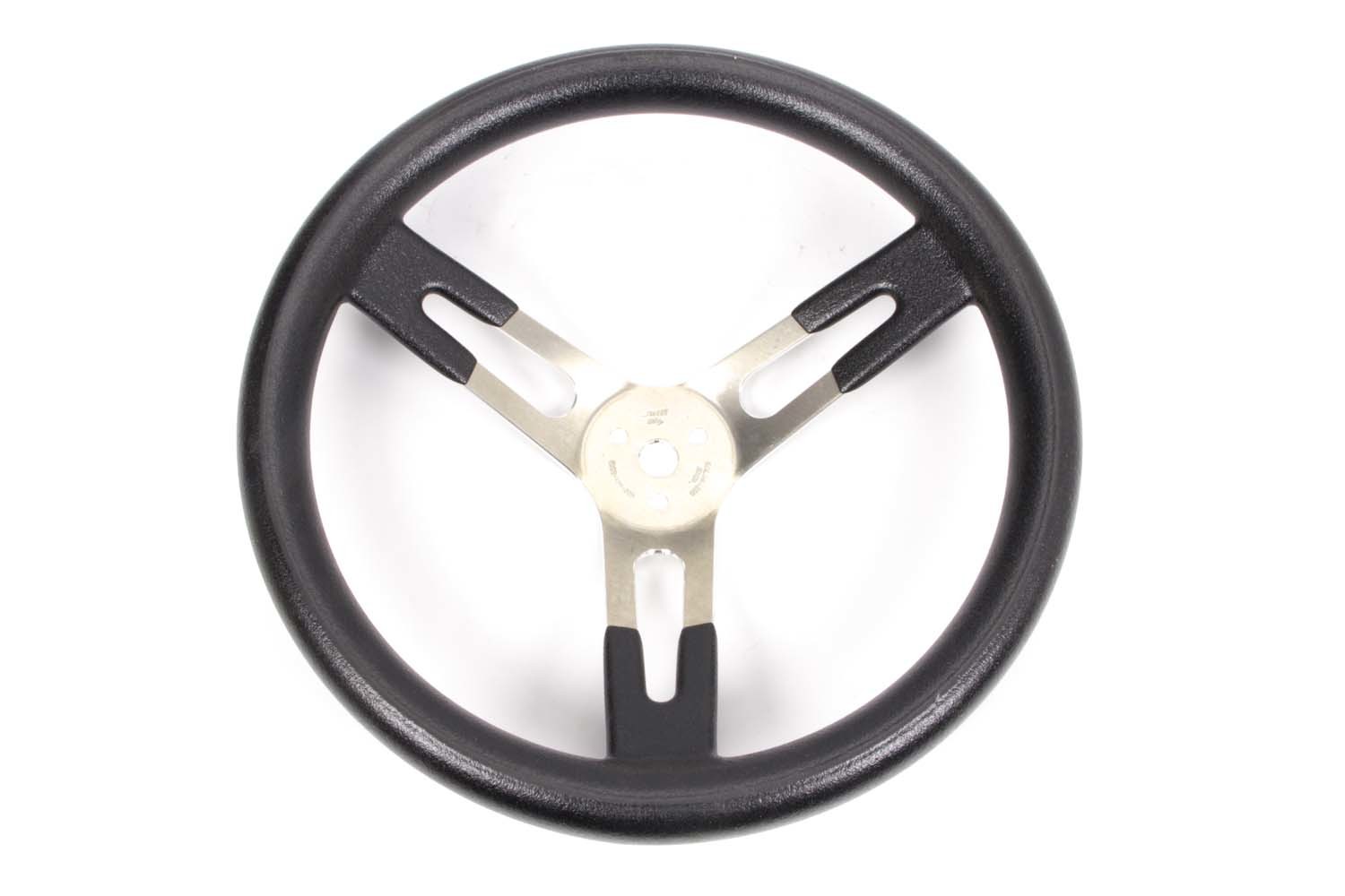 Steering Wheel – 15 in Diameter – 3 in Dish – 3-Spoke – Black Rubberized Grip – Aluminum – Brushed – Each