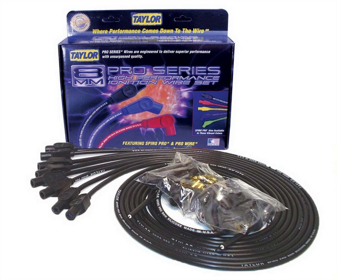 Spark Plug Wire Set – Spiro-Pro – Spiral Core – 8 mm – Black – Straight Plug Boots – HEI / Socket Style – Cut-To-Fit – V8 – Kit