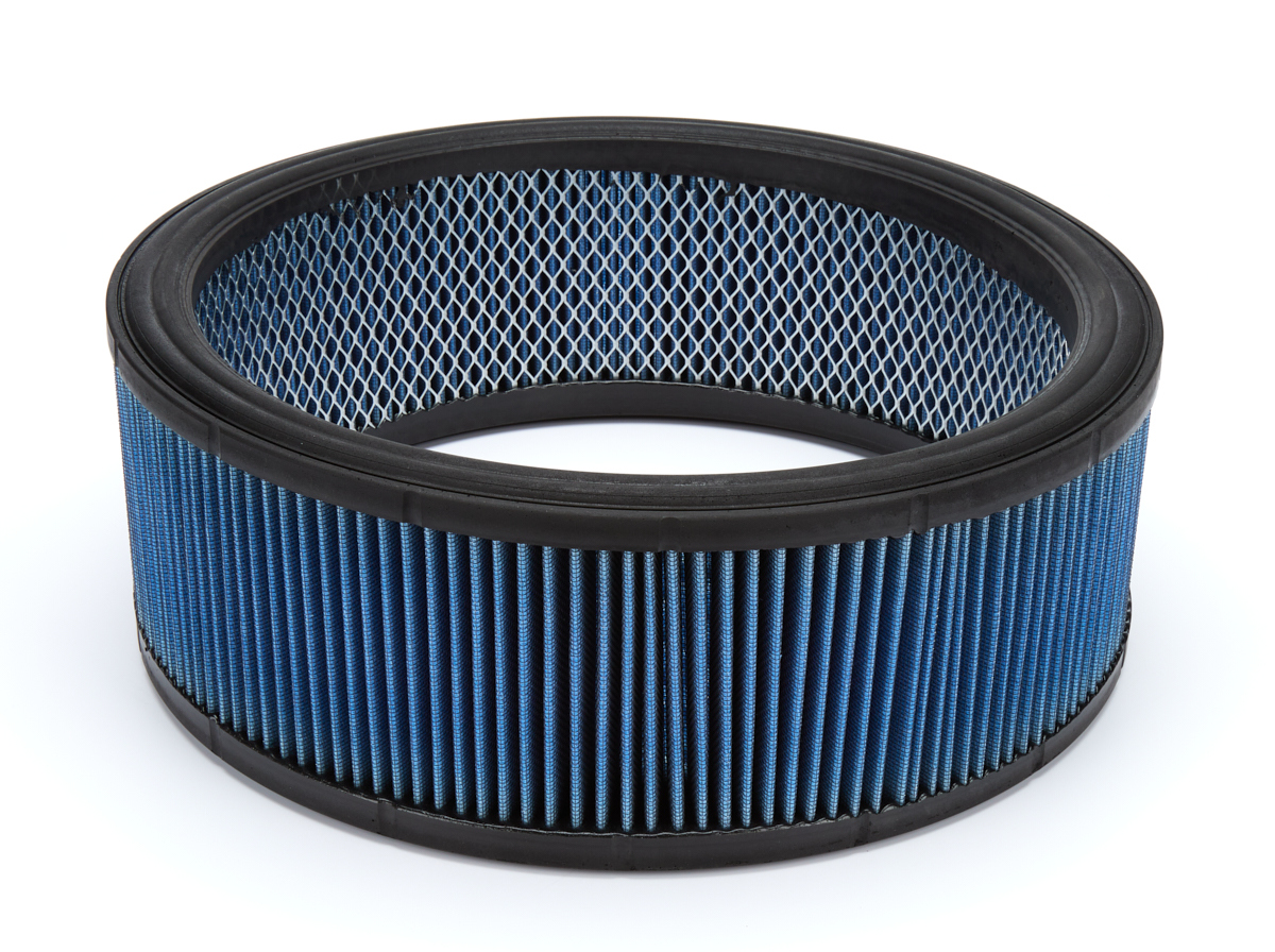 Air Filter Element - Low Profile - Round - 14 in Diameter - 5 in Tall - Wire Mesh Included - Reusable Cotton - Blue - Each