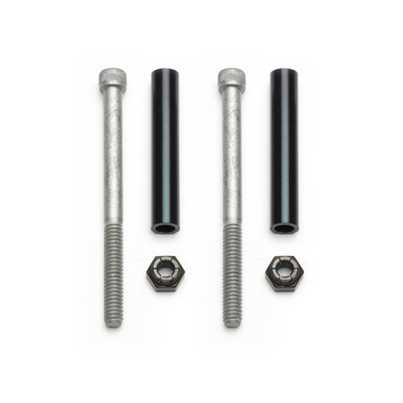 Brake Caliper Bridge Bolt Kit - 1/4-20 in Thread - 3.25 in Long - Hex Head - Grade 8 - Spacers / Nuts Included - Steel - Zinc Oxide - 0.810 in Rotor Thickness - Kit