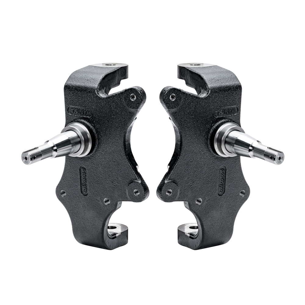 Spindle – 2 in Drop Spindle – Driver / Passenger Side – Steel – Black Paint – Chevy Fullsize Car 1955-57 – Pair